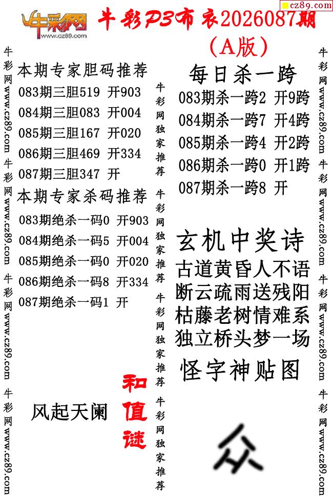 牛彩P3布衣26年087期AB版图谜(精华版)-3D开机号_福彩3d开机号_中彩网3d开机号_3D开机号查询_福彩网