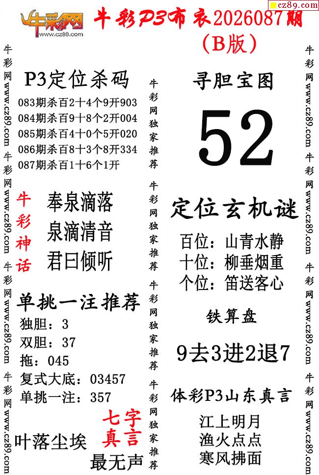 牛彩P3布衣26年087期AB版图谜(精华版)