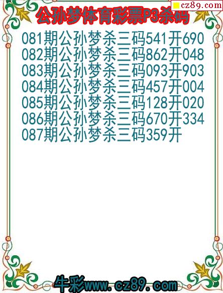 26年087期公孙梦体育彩票P3杀码图