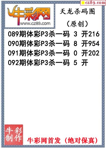 天龙杀码092期体彩P3图谜(原创)