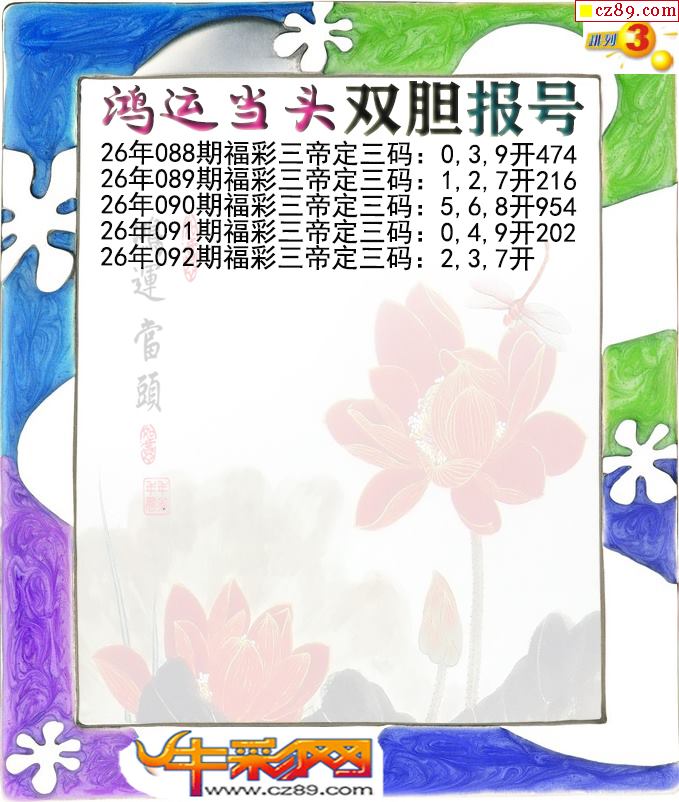 首页 > 排列3图谜 > 鸿运当头双胆报号092期体彩P3图谜
