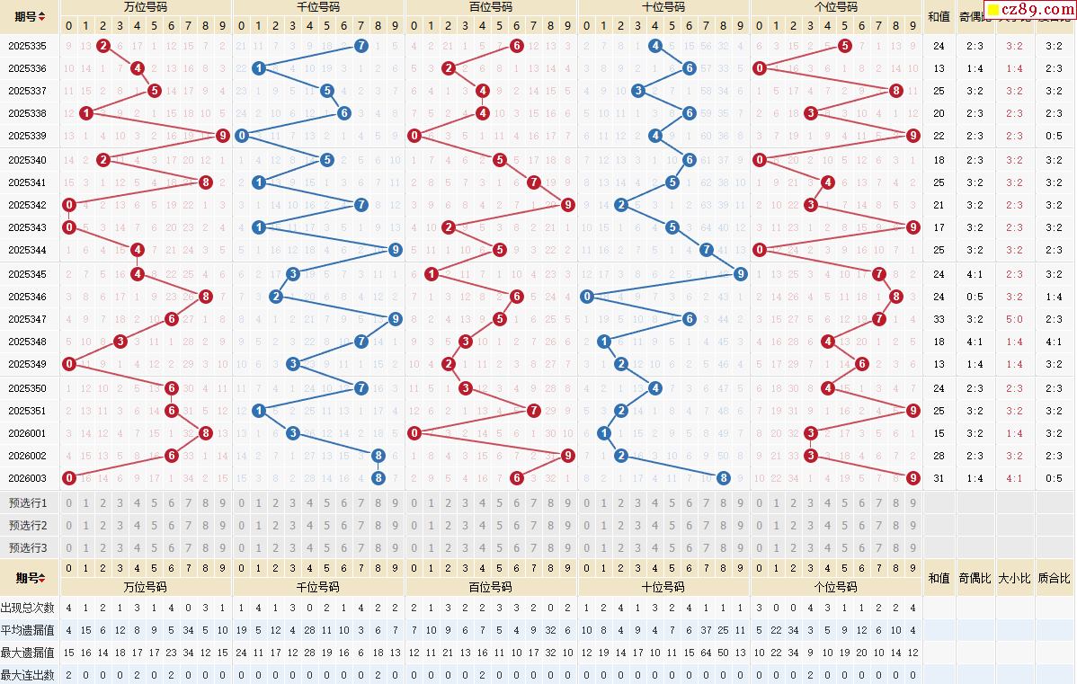 004期体彩排列5近期历史号码图表
